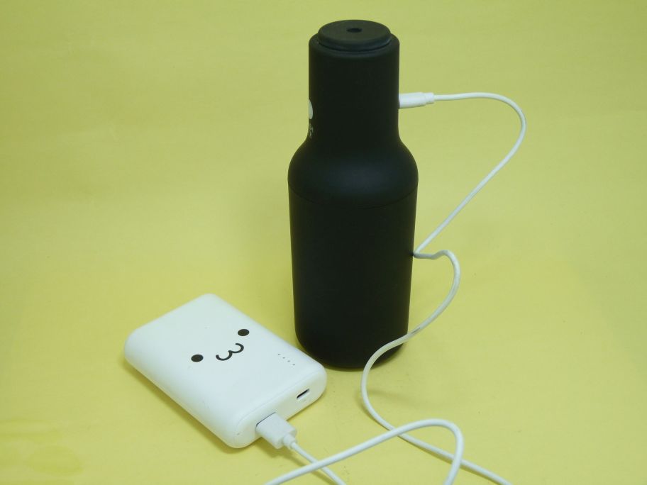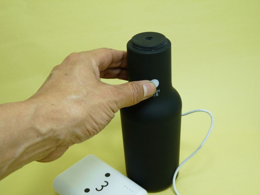 そうです。これが持ち歩ける300mmペットボトルサイズのHashForPro専用 空中噴霧器です。