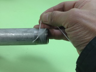 こんな風に、ネジの終わりから先端部分にロックタイト55を持ってきまして、先端部分から雄ネジに巻き付けていきます。