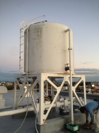この高架水槽は40年くらいになるそうです。老朽化していますので上に乗るのも怖いぐらいです。