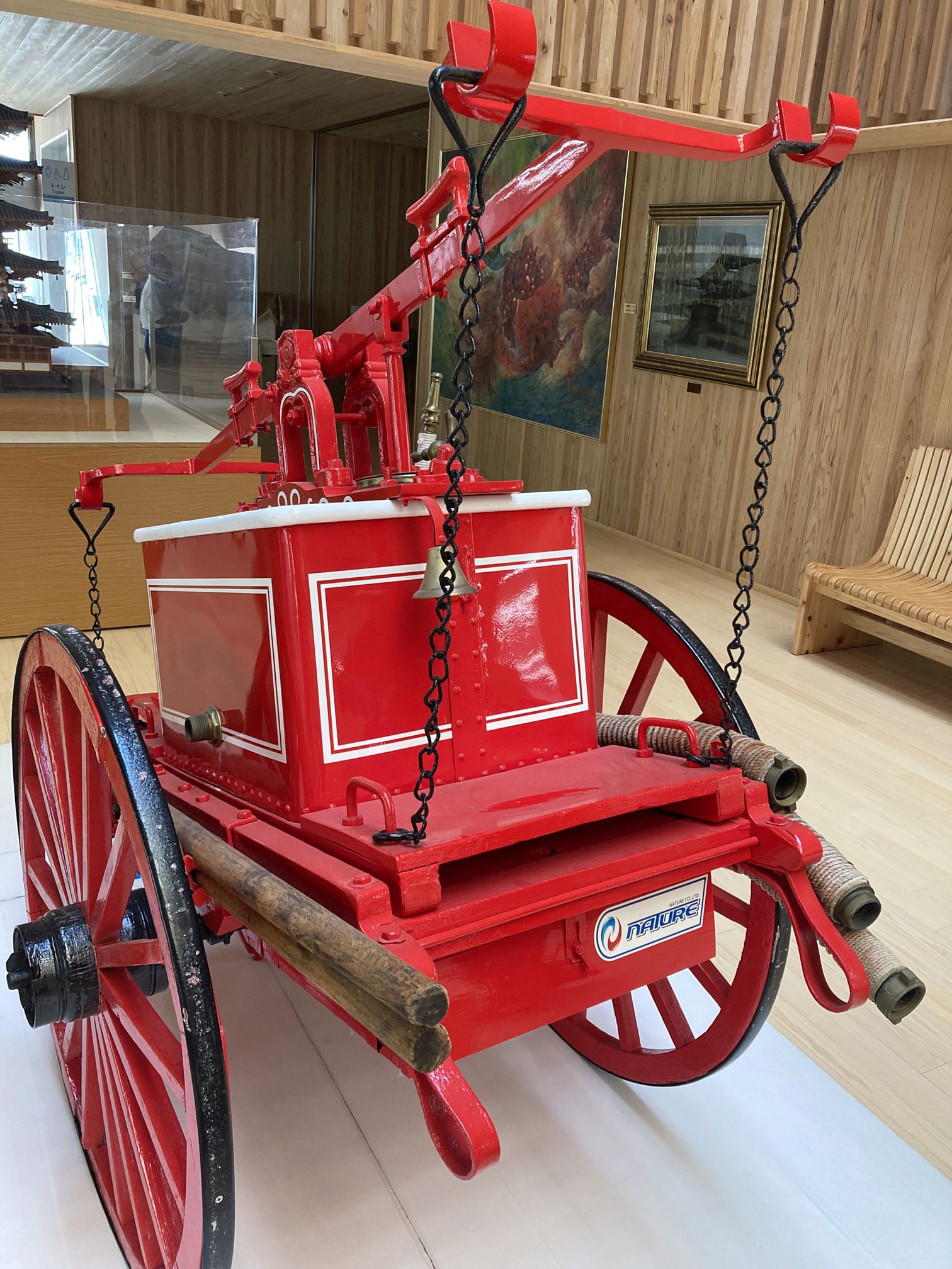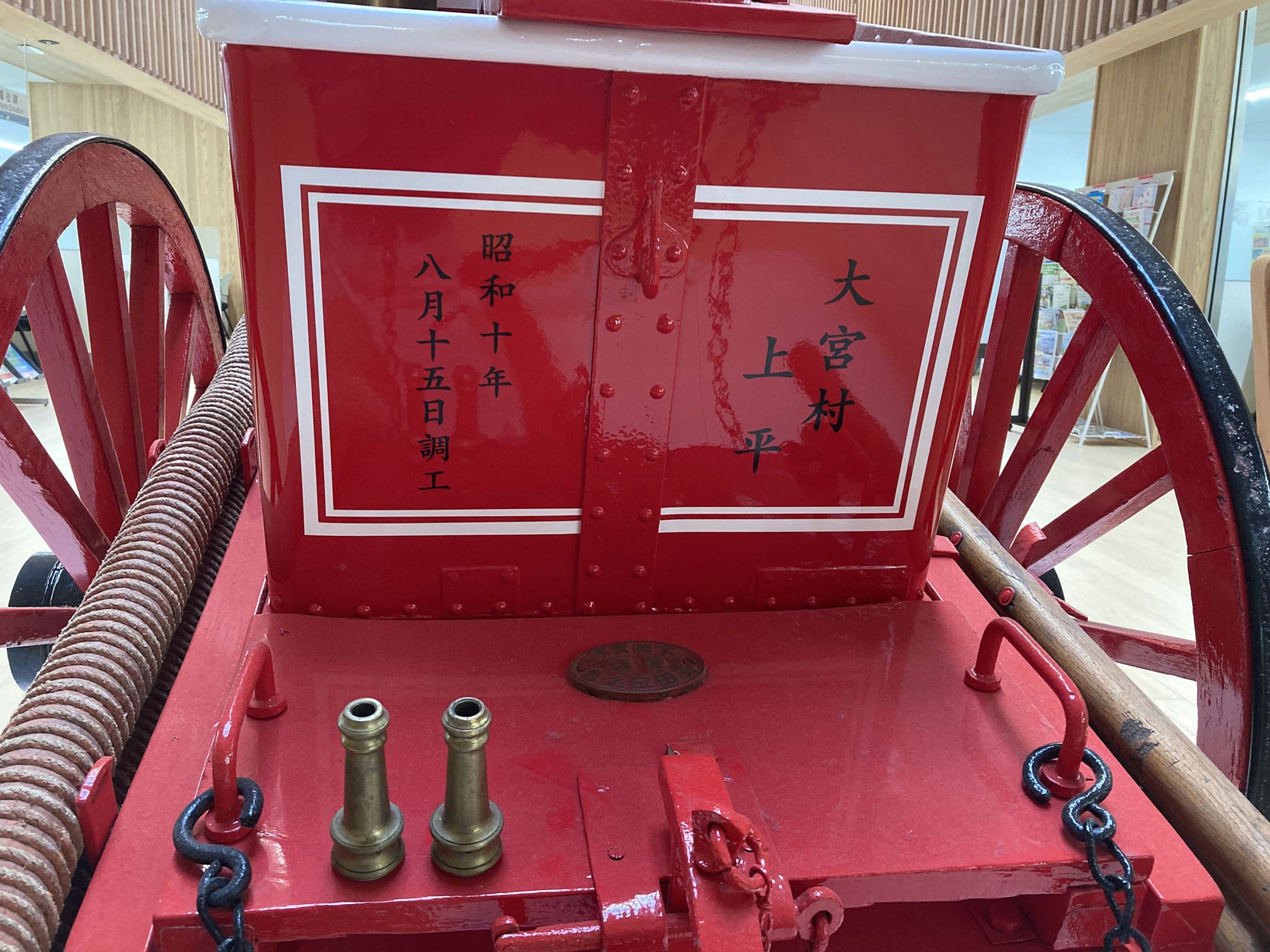 例の消防ポンプは、展示スペースのメインとして置かれているそうです。有り難いことです。