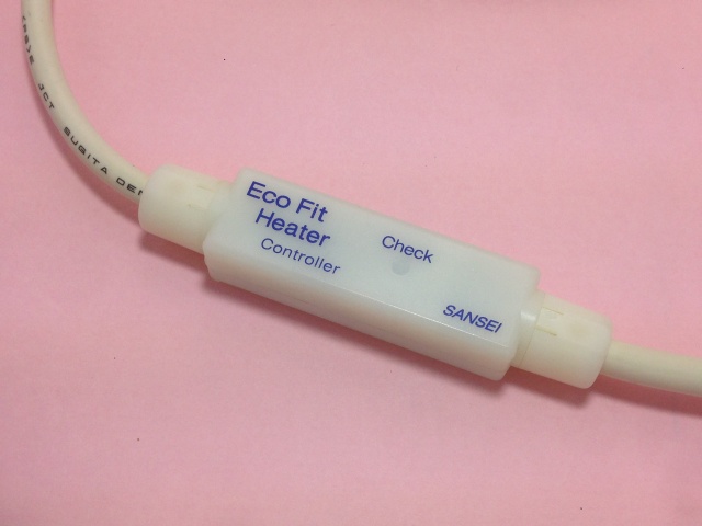 このヒーターの中央部にあるちょっと膨らんだ部分がセンサーです。この部分で配管の温度を感知します。