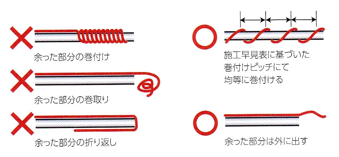 また、間を詰めて巻きすぎるのも過度の発熱の原因となり、危険です。