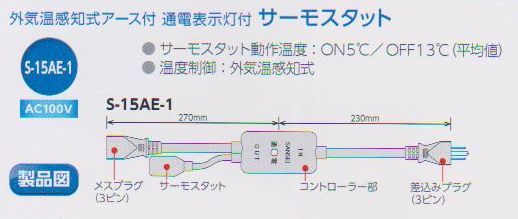 なお、自己温度制御タイプは、温度が上がっても通電しておりますので、凍結の心配のある季節がすぎましたら、コンセントを抜くか、この↓コントローラを(施工時に)お付け下さるようお願いいたします。
