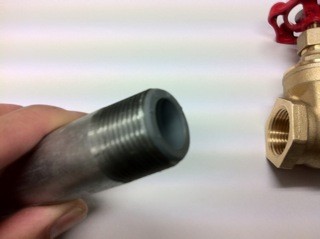 このようにねじを切ったライニング鋼管やVBニップルの管端に挿入して使用します。